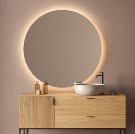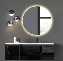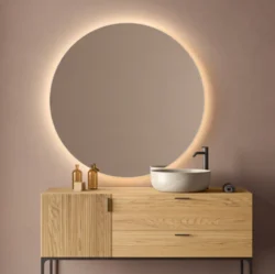 Koniseur rundt badeværelses spejl med LED til lampeudtag – Antidug – Ø70 – DEMO