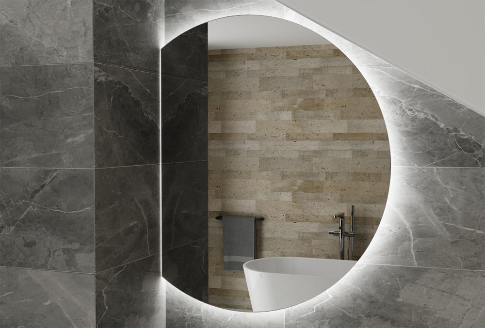 Rundt, skåret poleret spejl og LED-baggrundsbelysning