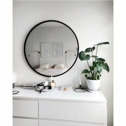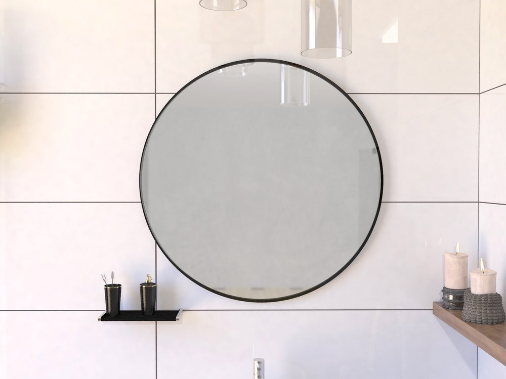 Et rundt spejl i en sort aluminiumsramme, der er modstandsdygtig over for korrosion, er et ideelt tilbud til dem, der sætter pris på komforten ved brug og godt design.