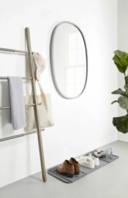 Dette ovale spejl fra Umbra er perfekt som vægdekoration til dine mindre rum eller gange. Rammen er lavet i gummi, hvilket gør det mere holdbart end andre spejle. Der medfølger al nødvendig monteringshardware og er nem at installere.