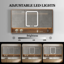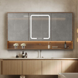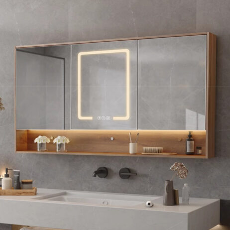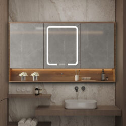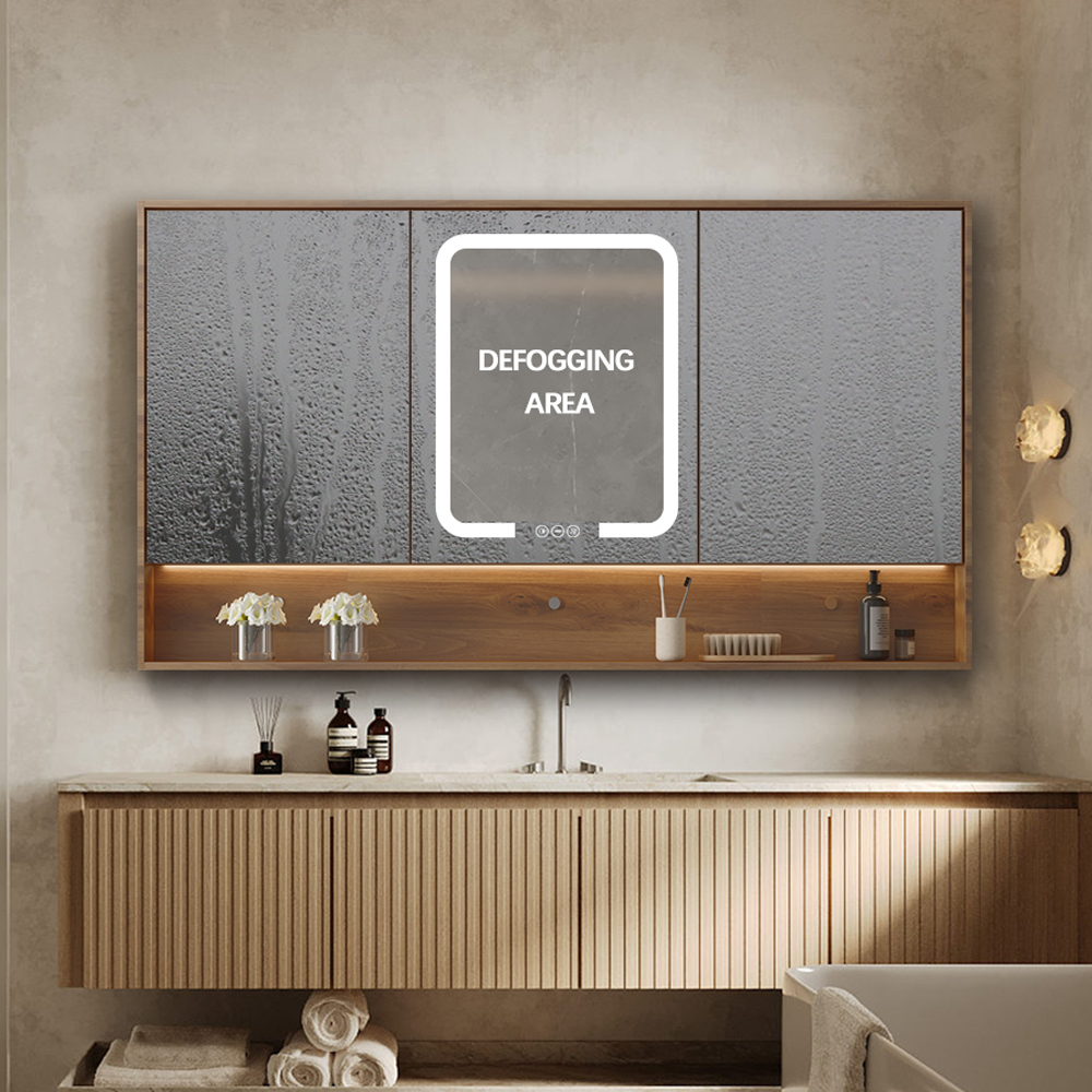 Koniseur spejlskab i trælook. 75x120x14 cm med Led lys, antidug og touchsensor