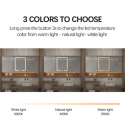 – Touch Sensor – lys og antidug tændes og slukkes på spejlet. OBS: Touch knapperne lyser blåt.