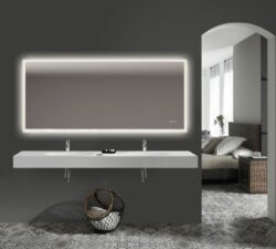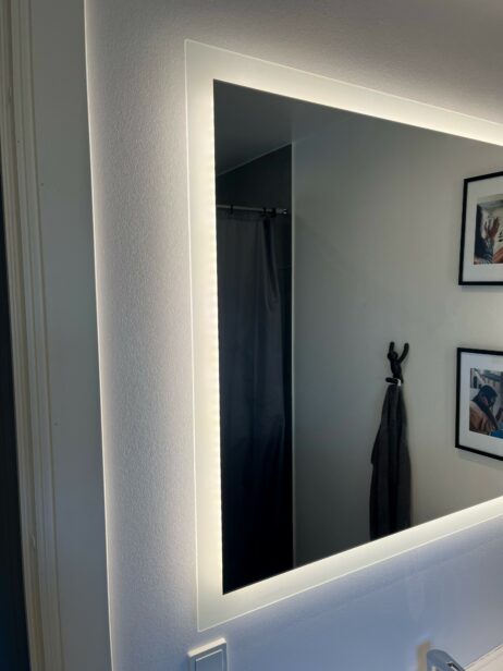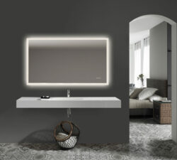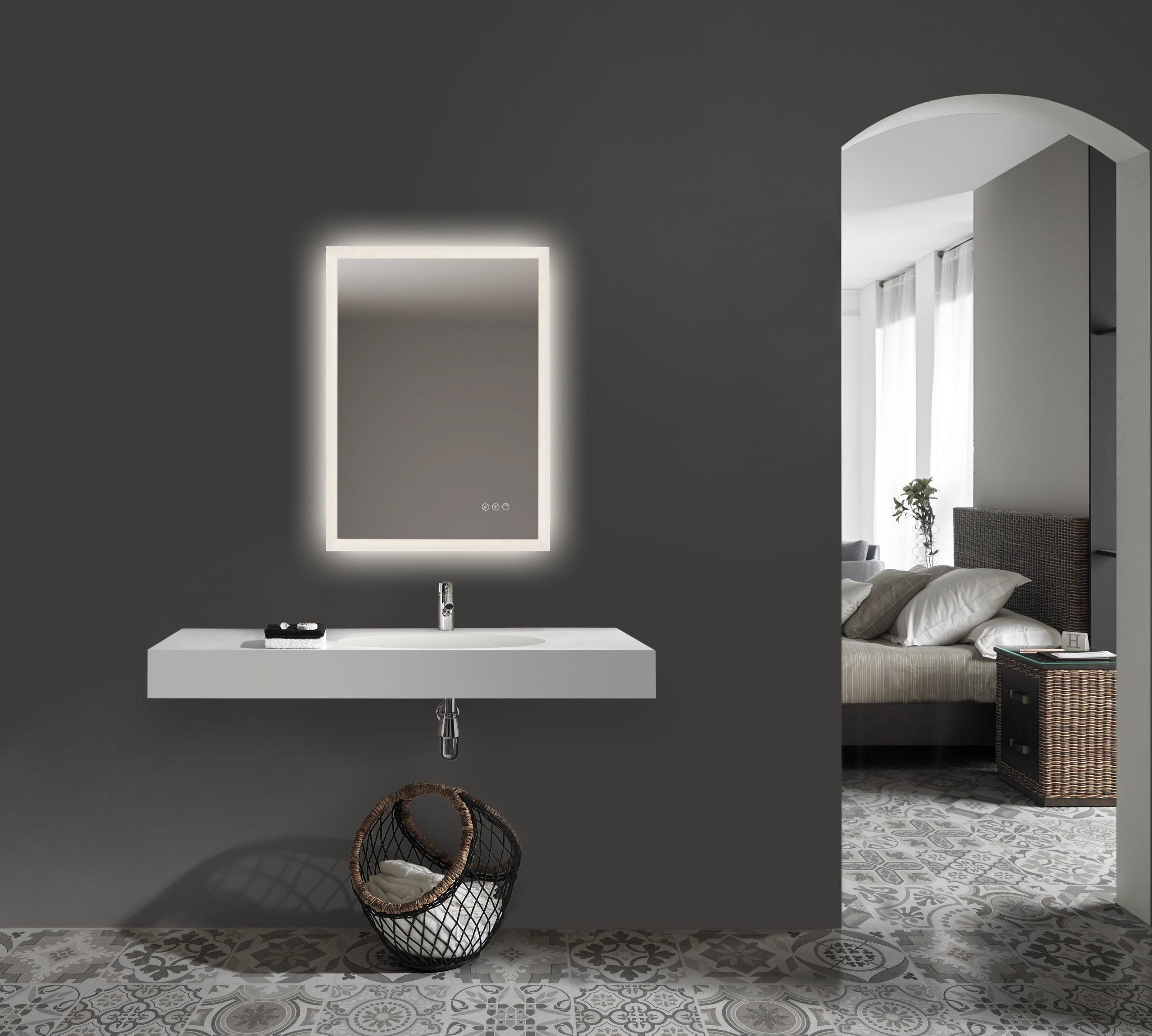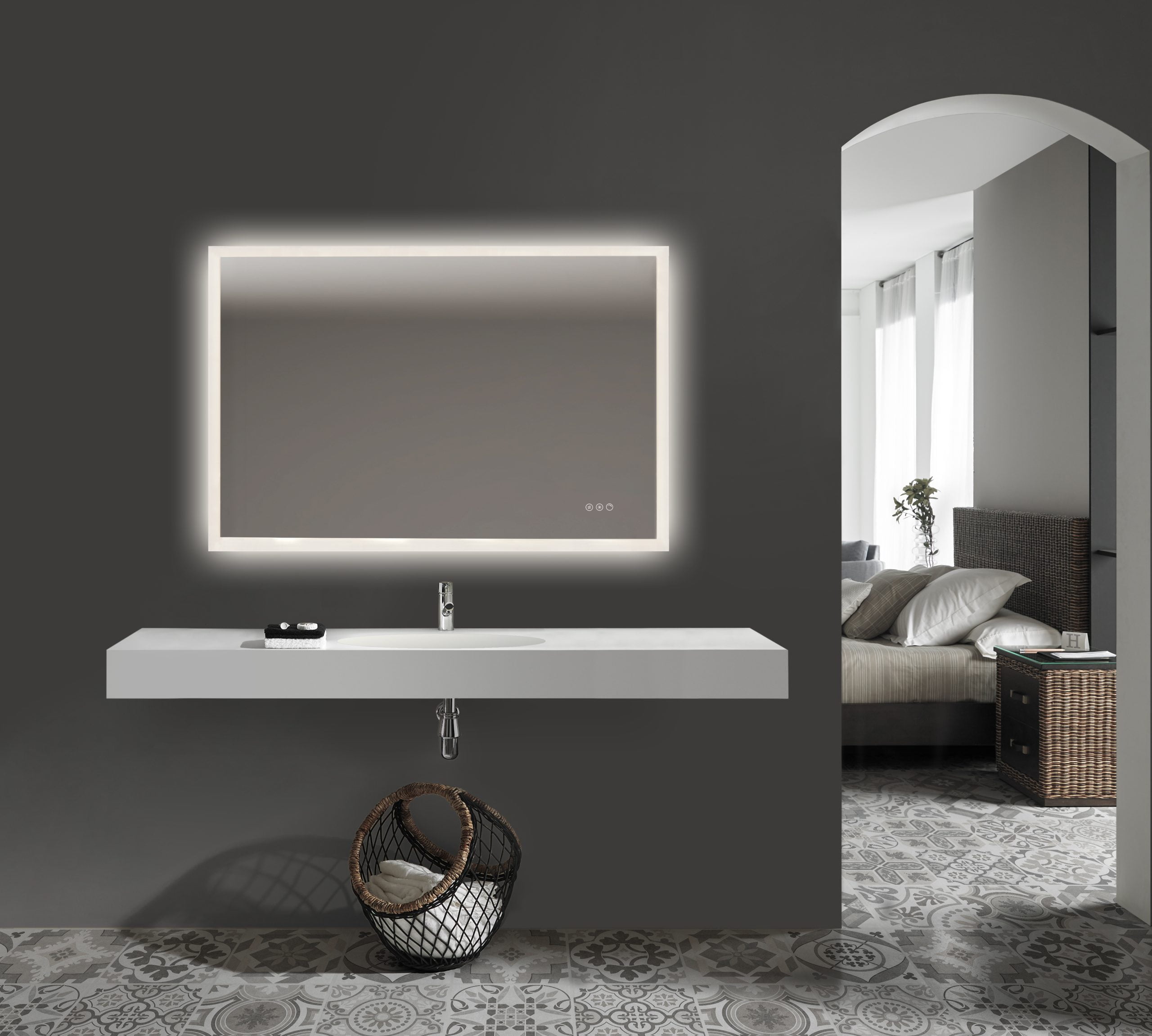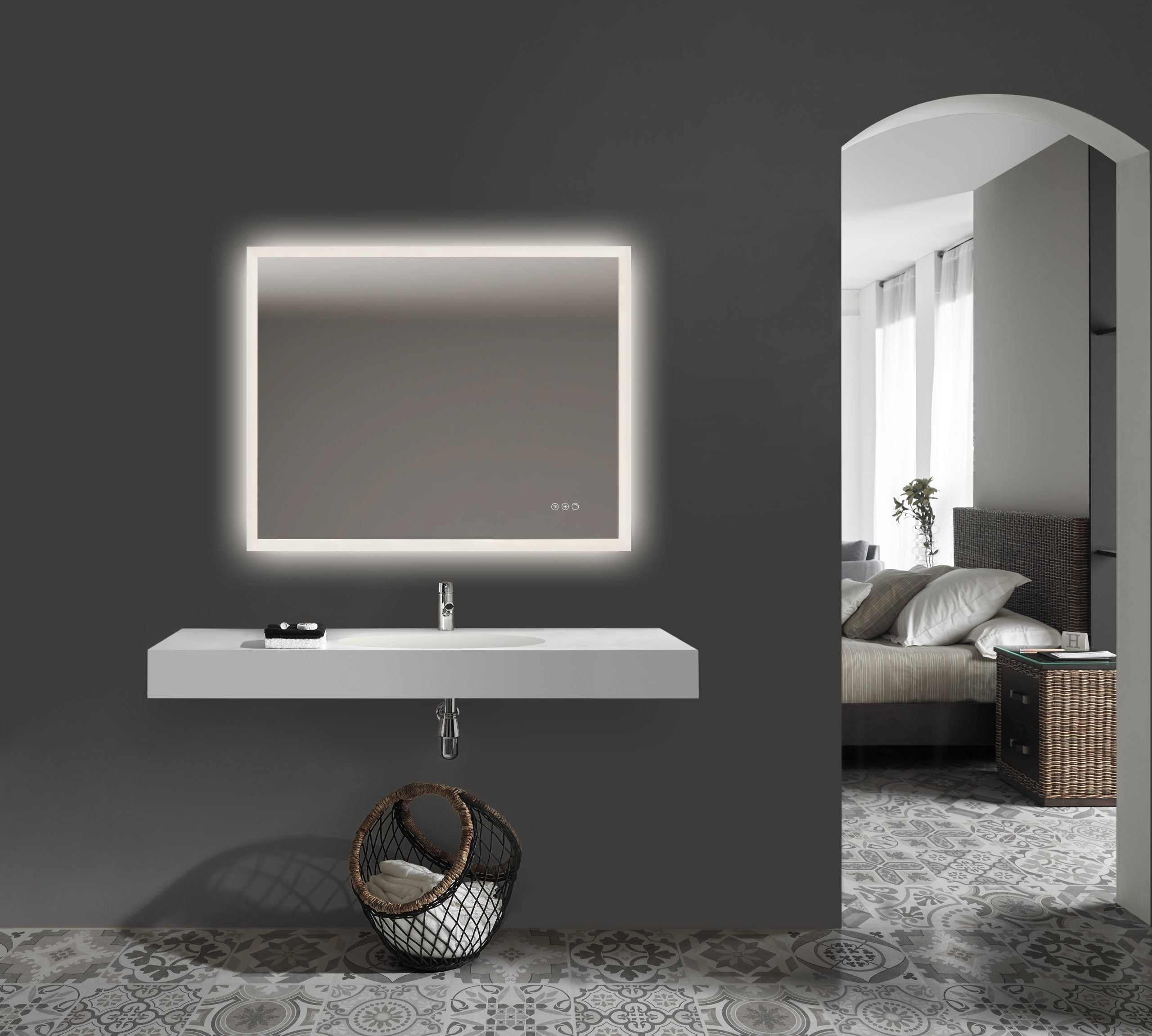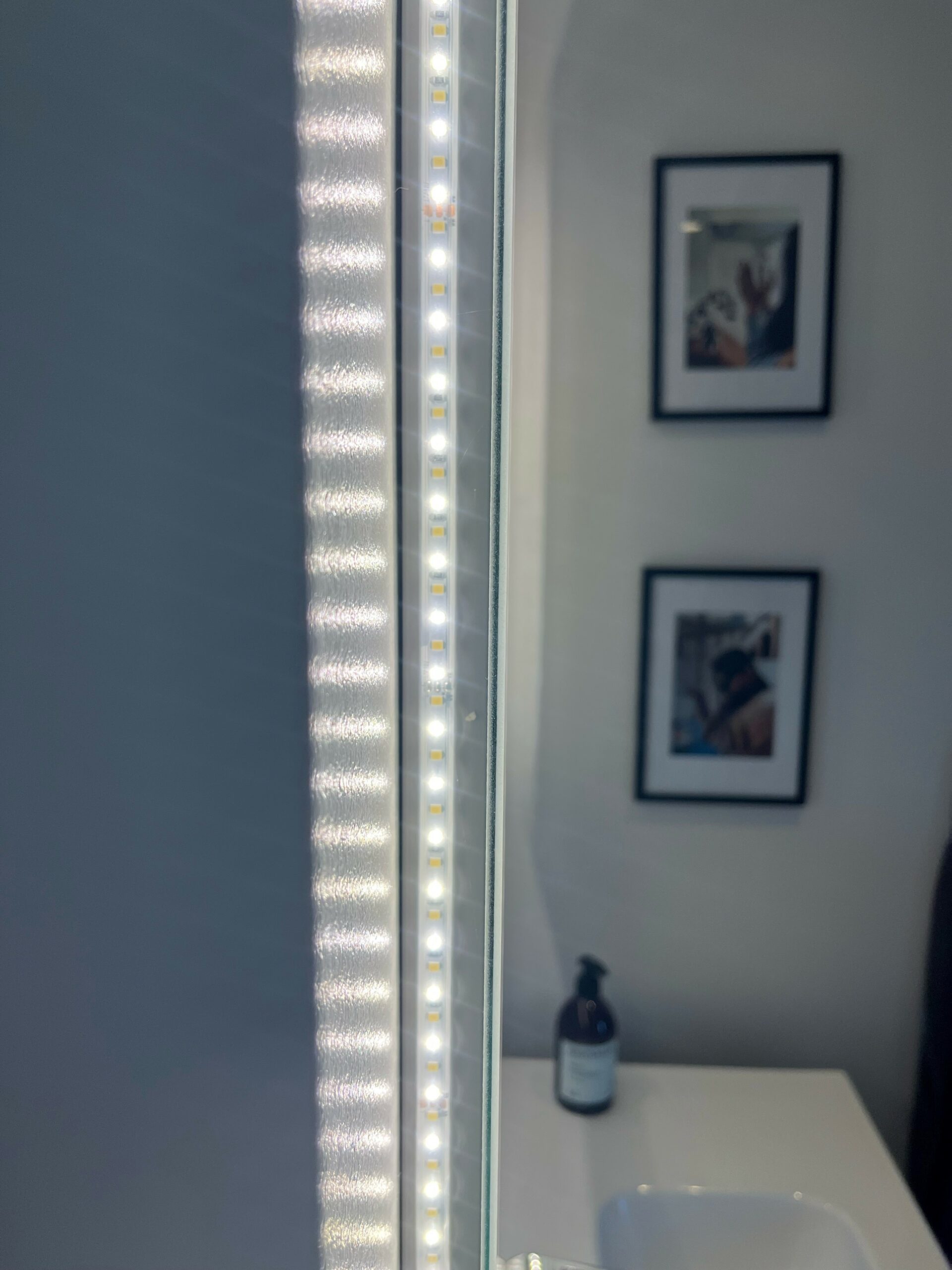 – Justere farvetonen på lyset fra kold til varm hvid. - Spejlet er uden ramme, og har en 40mm sandblæst kant.