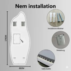 – LED backlight – tændes og slukke på Touch sensor på spejlet – Dog kan den også slukkes og tændes på afbryder/lampeudtag/stikkontakt du kobler det til da spejlet har hukommelse fra sidste indstilling.