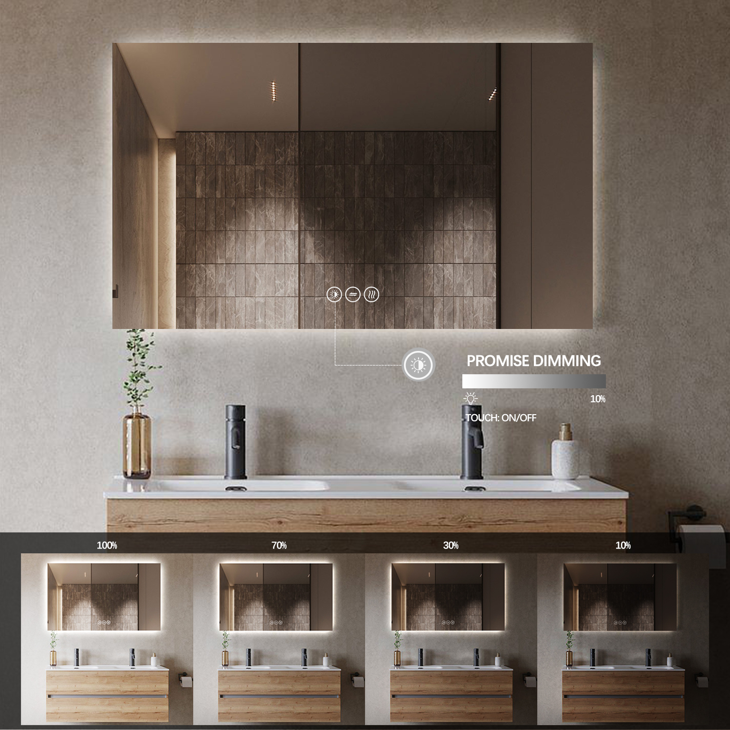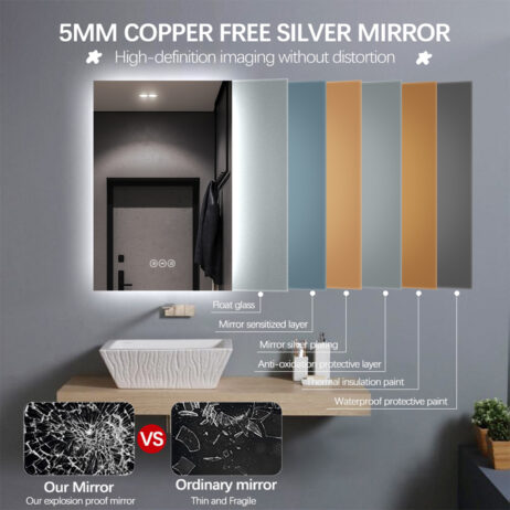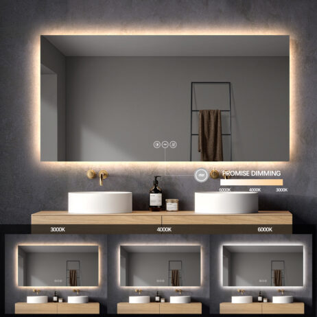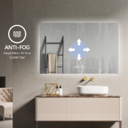 – LED backlight – tændes og slukke på spejlets touch sensor. (man kan også slukke det på afbryder/stikkontakt det er tilkoblet – da spejlet har hukommelse fra sidste indstilling)