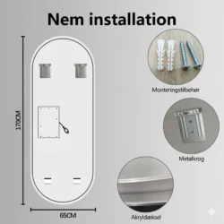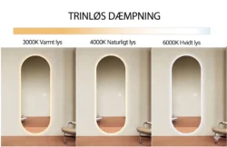 Energiklasse: F (obs på at spejlet ikke bruger meget strøm, da det typisk ikke er tændt i lange perioder, som andre lamper i hustanden)