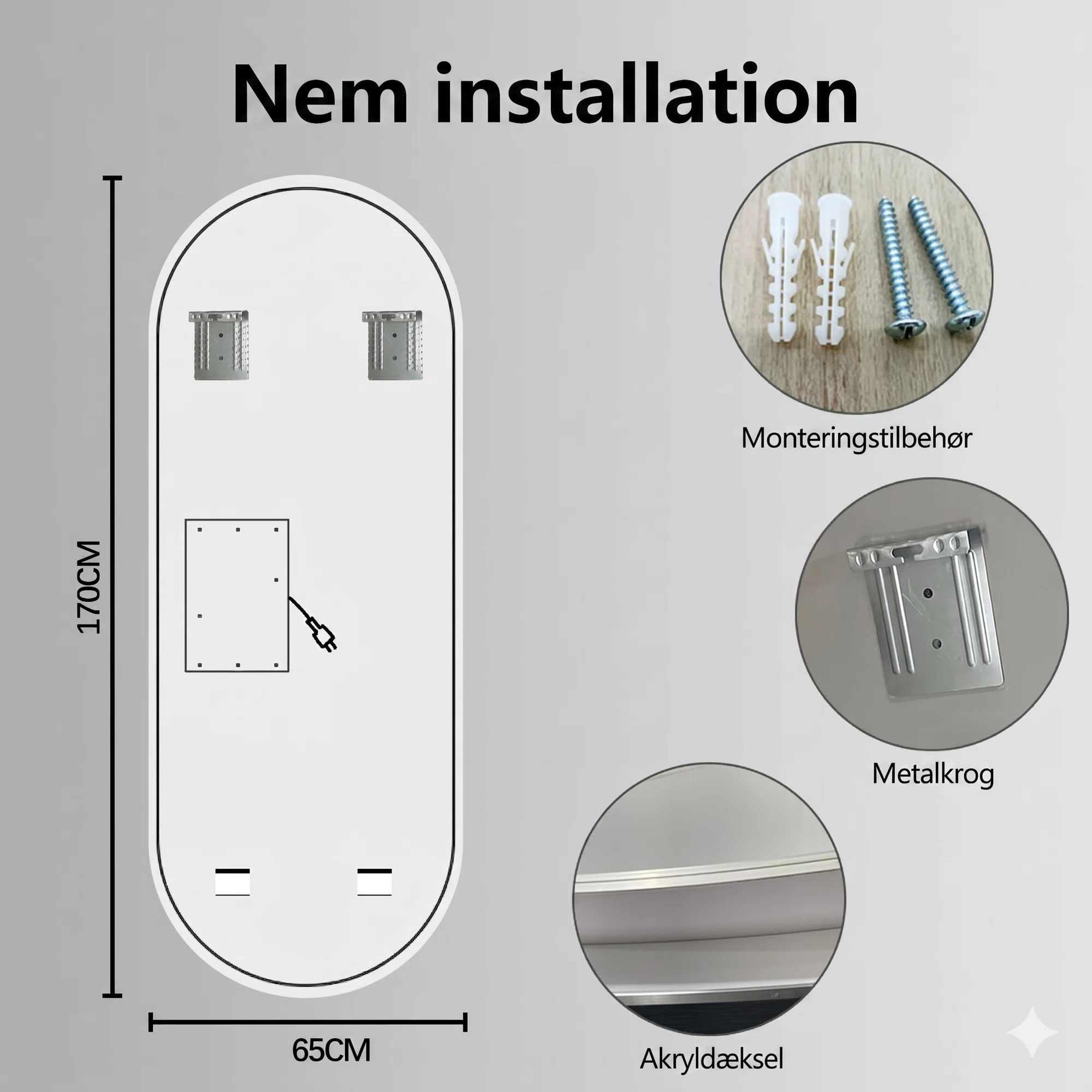 – Anti korrosions behandling – for lang holdbarhed (vigtigt for badeværelsesspejle).