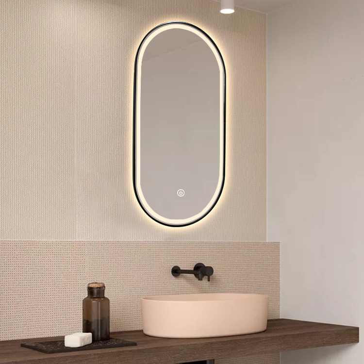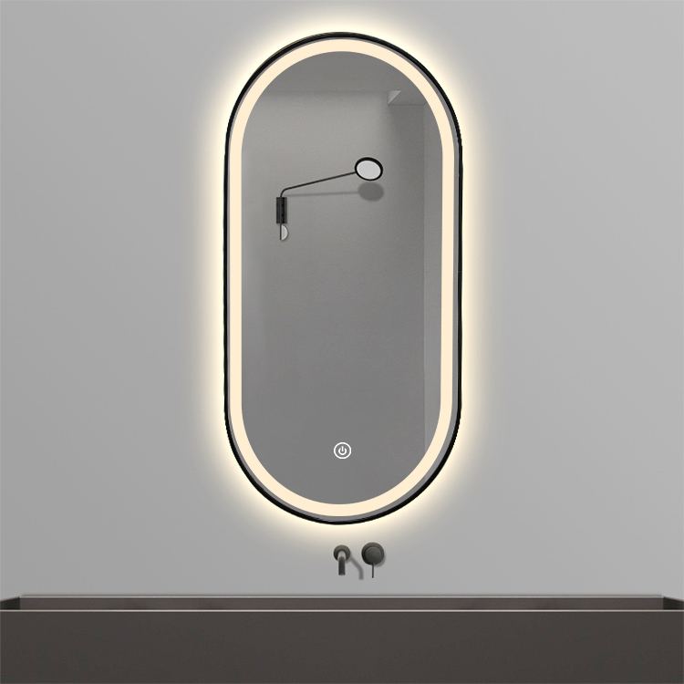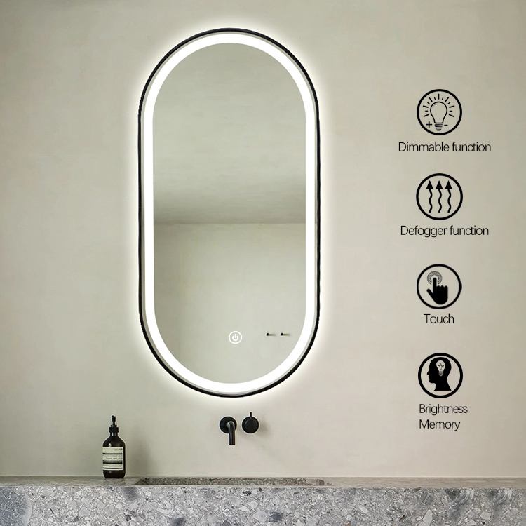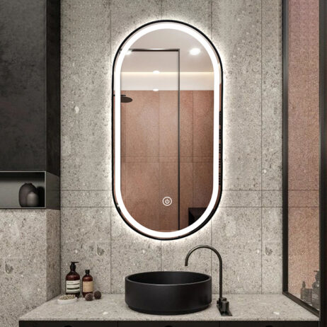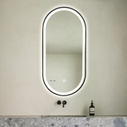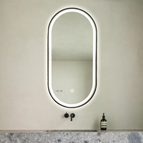 Koniseur spejl Oda med LED lys og sort alu ramme – Flere størrelser