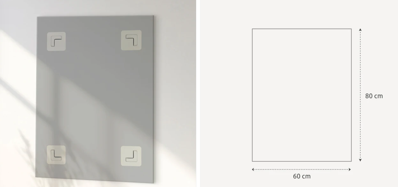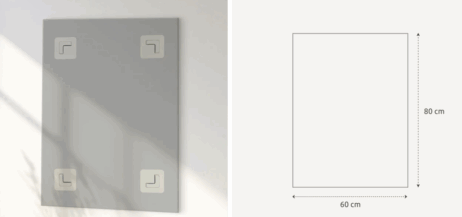 Størrelse: 60×80 cm – kan vendes som man ønsker – beslag til begge veje.