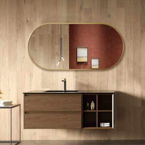Flot Spejl med 9 mm guld ramme i trælook fra Wallshop’s egen serie af spejle