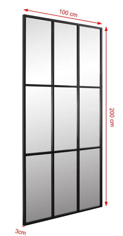 New York Spejl Sort ramme med 9 felter 200×100 Partivare